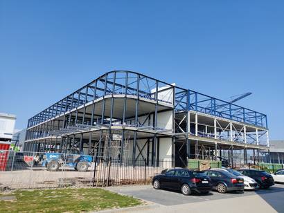 Nieuwbouw modern bedrijfspand met een oppervlak van ca. 13.000m2 op bedrijventerrein Honderdland te Maasdijk bestaande uit een bedrijfshal met hoofdkantoor.
