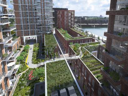 Nieuwbouwproject met 450 woningen verdeelt over appartementen, stadswoningen, hofwoningen en penthouses op Katendrecht te Rotterdam