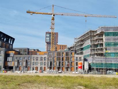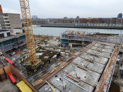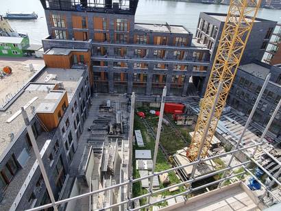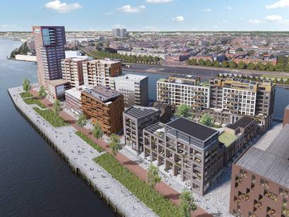 Nieuwbouwproject op de Lloydpier te Rotterdam. Het plan omvat 95 woningen verdeeld over 5 gebouwen variërend van 3 tot 9 verdiepingen.