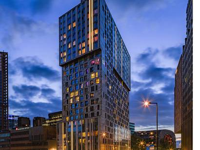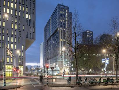 Nieuwbouw 70 meter hoge woontoren gelegen aan de Blaak in het centrum van Rotterdam. Het gebouw bevat 612 appartementen voor studenten en starters.