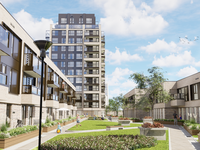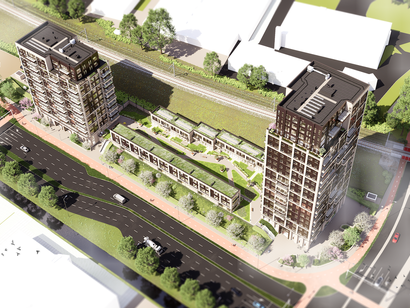 Het project bestaand uit 2 woontoren van 45 en 70 meter hoog. Tussen de blokken bevinden zich stadswoningen en een daktuin.